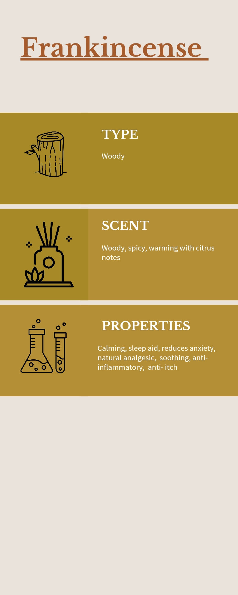 Frankinscence EO - Woody Aromatic a natural pain killer with anti-inflammatory properties anda soft, skin friendly feel