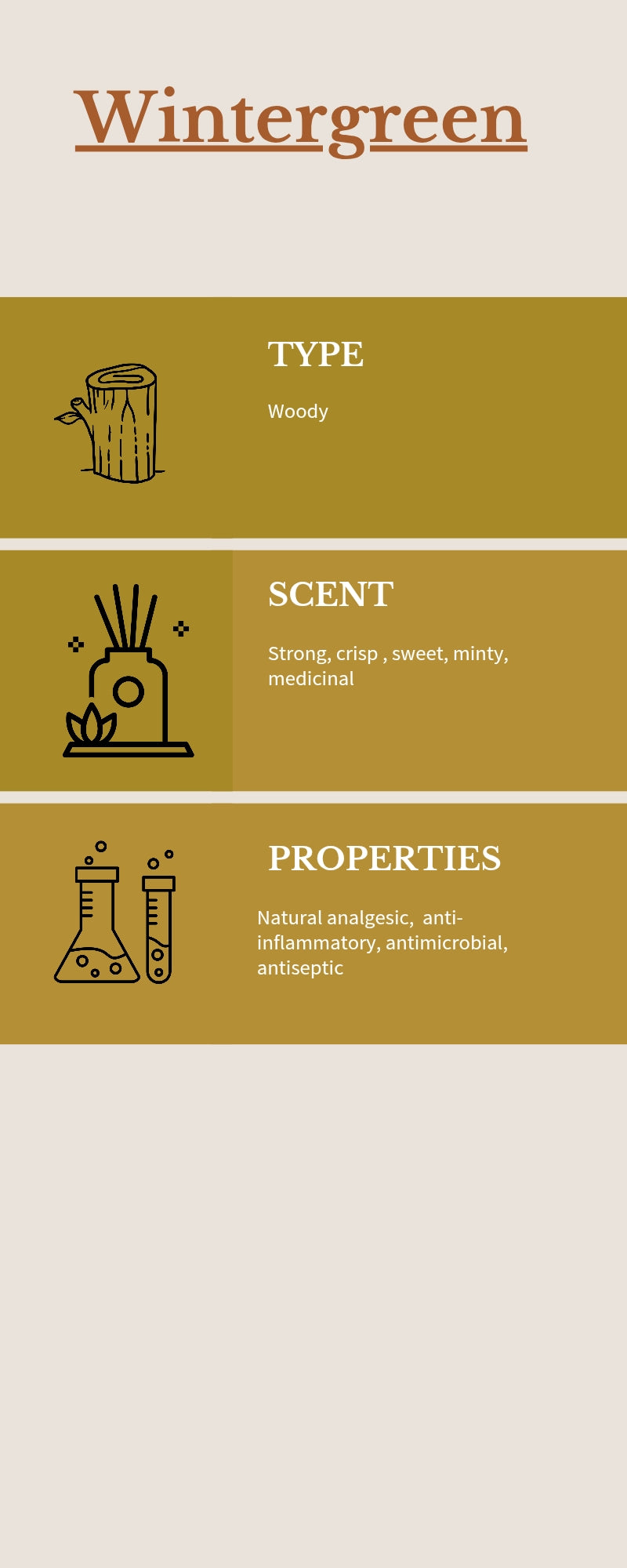 Wintergreen EO -Woody Aromatic - a natural pain killer, anti-inflammatory, muscle relaxant and anti-spasmodic