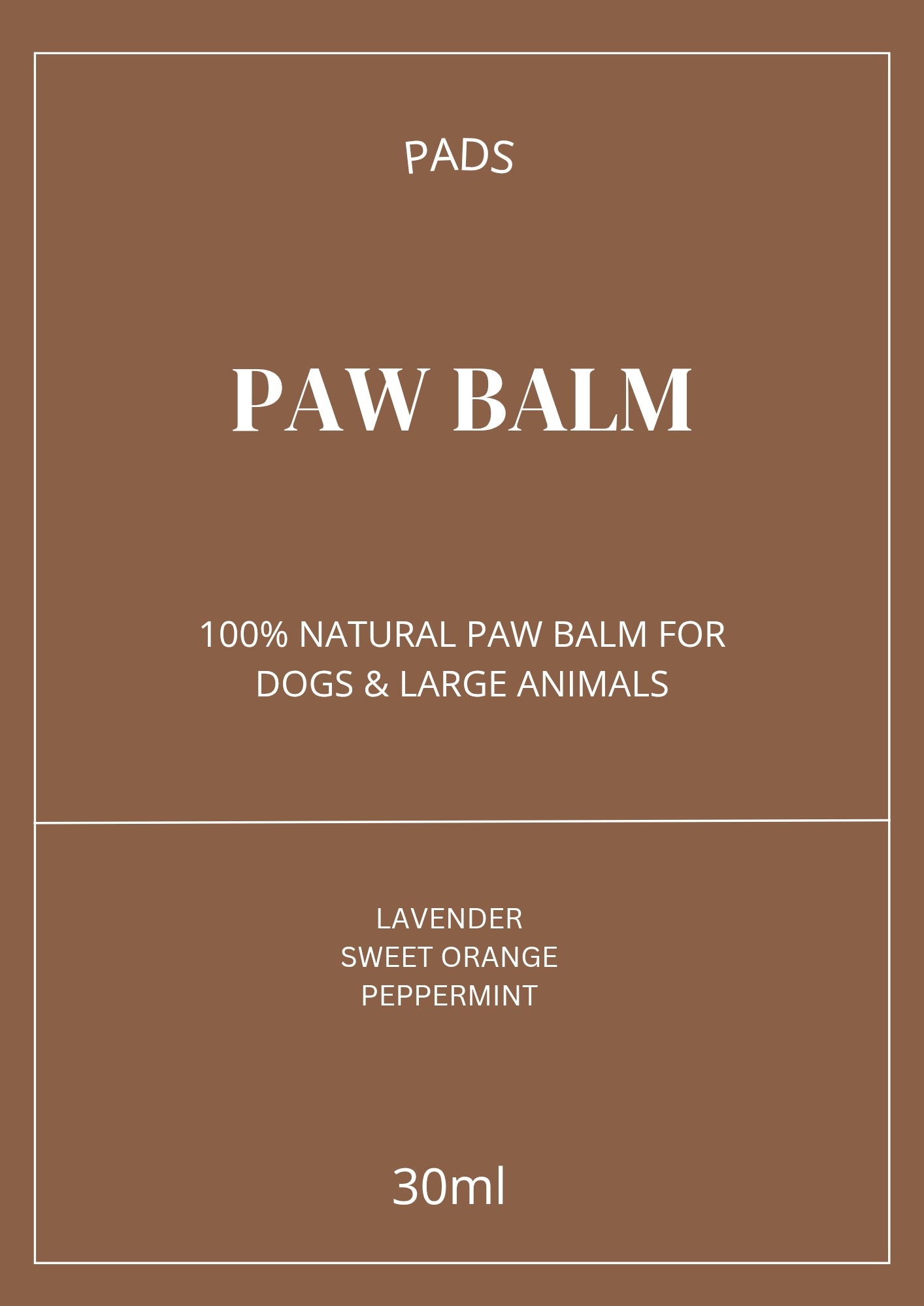 PADS SOOTHING PAW BALM (30ml jar) made with coconut oil, shea butter, beeswax and jojoba oil and enhanced with a mix of Lavender, Peppermint & Sweet Orange essential oils to promote healing, soothing, relaxation and moisturising