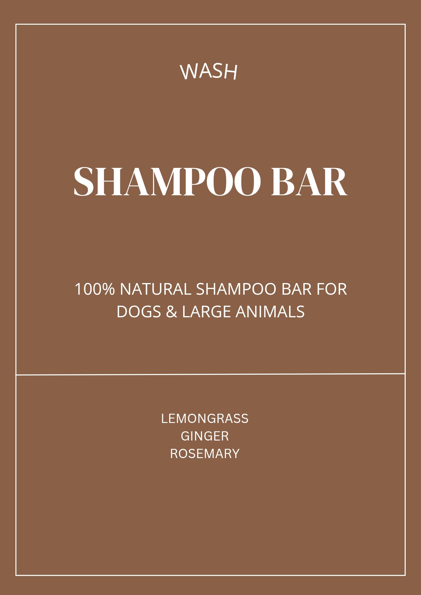 WASH NATURAL SHAMPOO BAR (50G bar) made with natural oils and butters, vegan friendly and specifically designed for dogs this cute shampoo bar foams beautifully and smells fresh and clean. using a dilution of Lavender & Chamomile specifically formulated for the PH of your dogs skin and coat, WASH is also great to prevent itchiness, is a great flea & tick repellent and leaves the coat satisfyingly clean and moisturised.