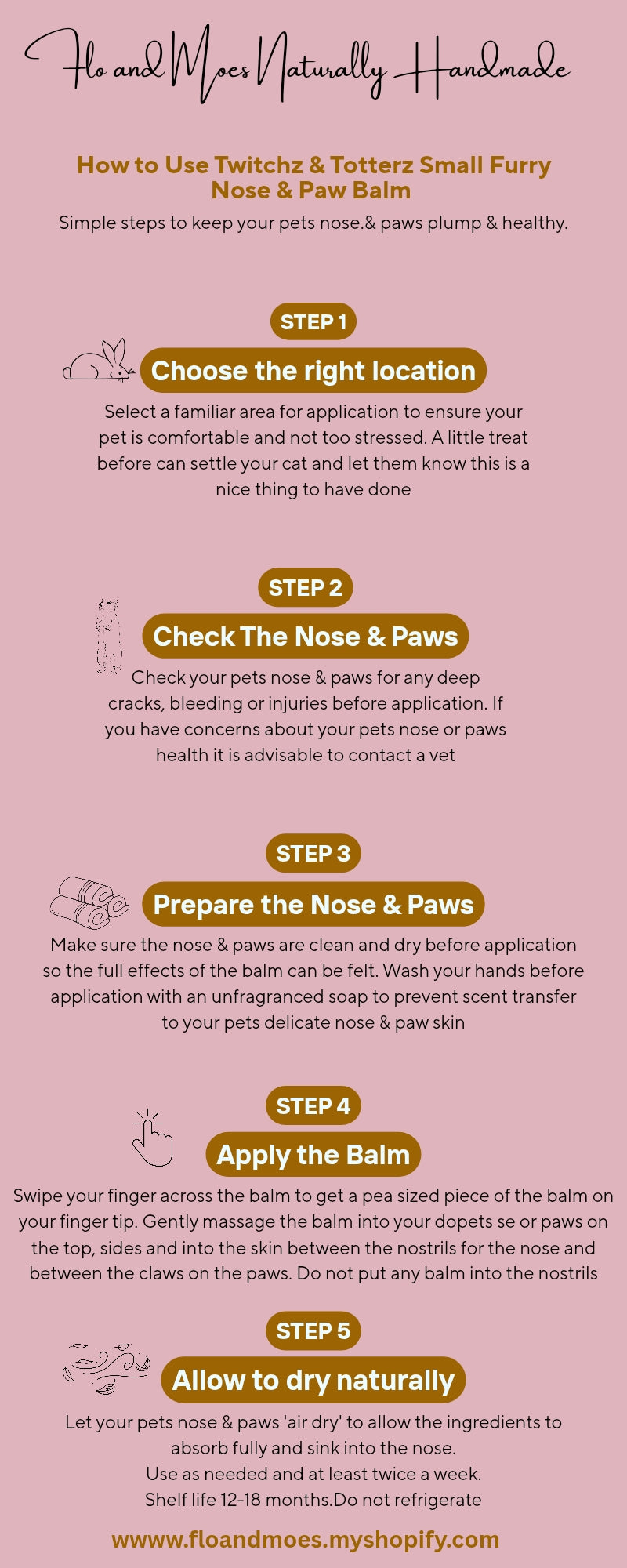 Our TWITCHZ & TOTTERZ unscented nose and paw balm will help provide that care..in a product specifically designed for our little friends.