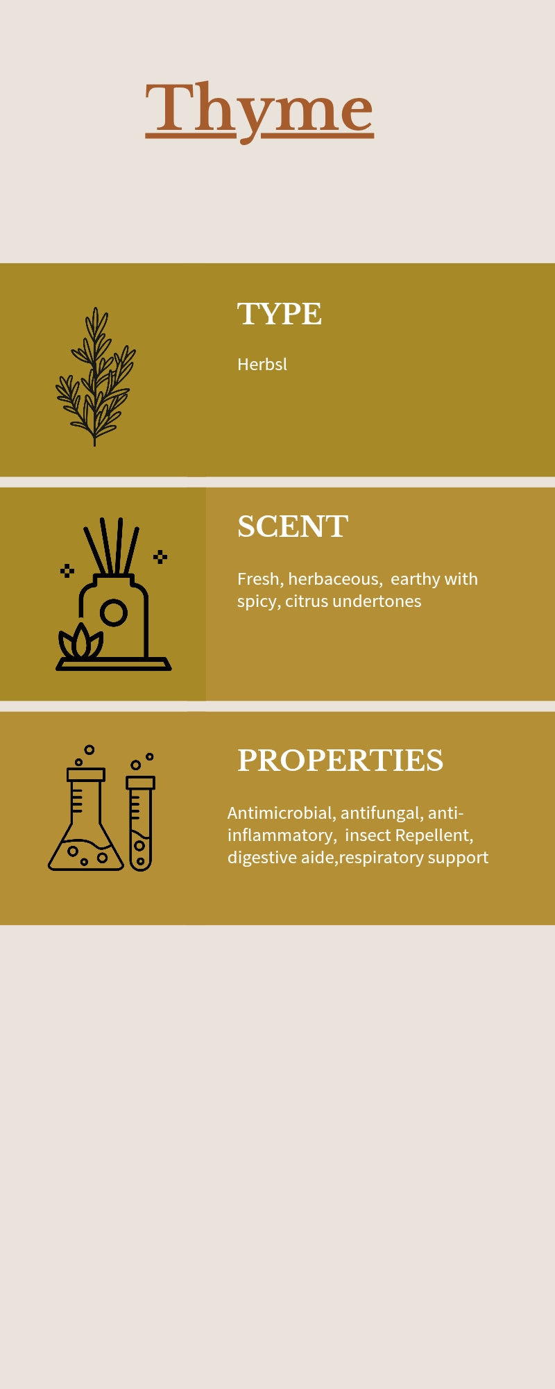 Thyme EO - Herbal Aromatic - known for its calming, soothing and relaxing and anti-microbial and digestive support properties