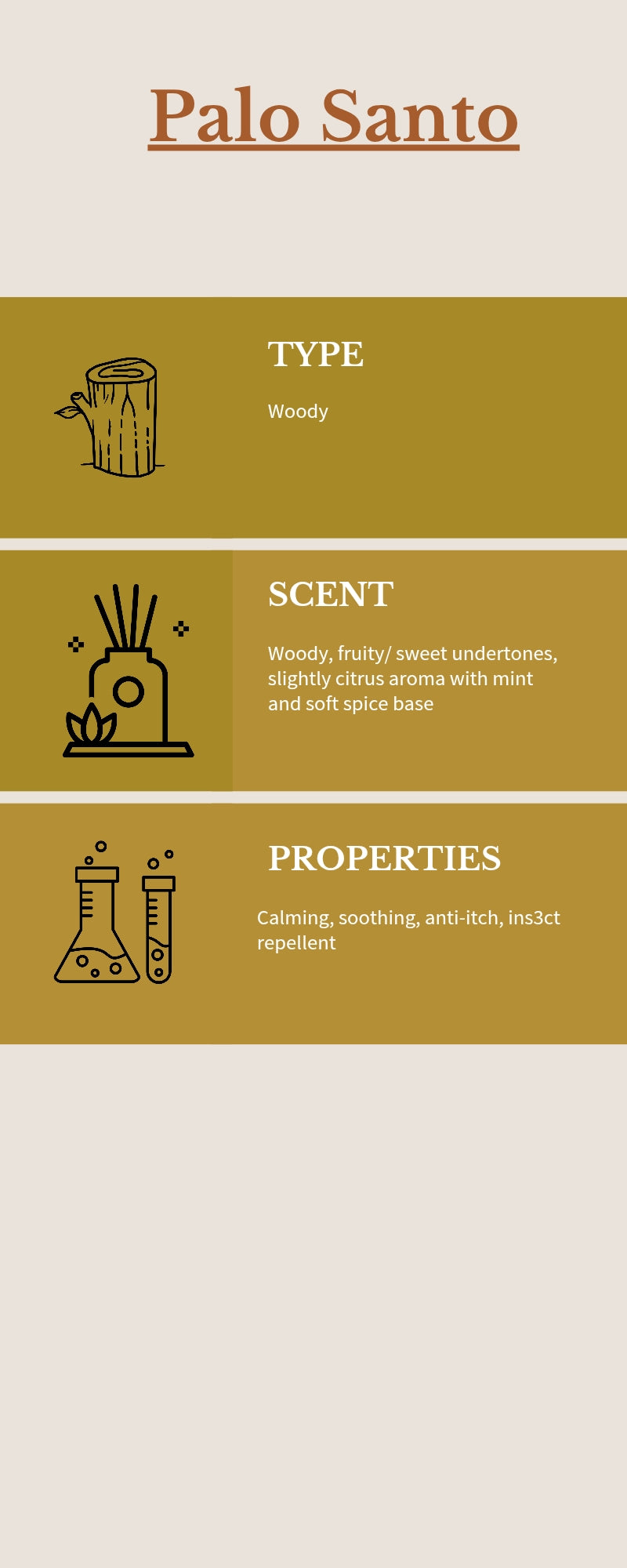 Palo Santo EO - Woody Aromatic- antiseptic, anti-inflammatory and analgesic